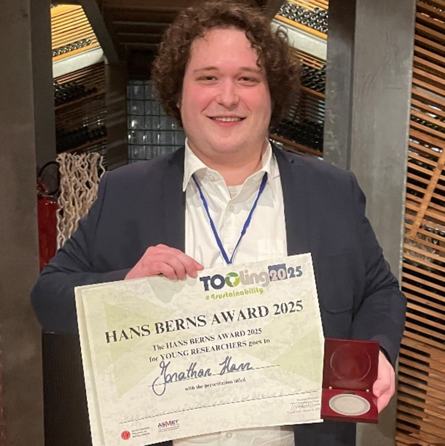 Jonathan Hann wurde für seinen Beitrag „Sliding wear and nitriding behavior of HWTS 50 tool steel tailored for L-PBF process“ bei der diesjährigen TOOLING-Conference 2025 (Tooling 2025 – 13th International Tooling Conference) mit dem Hans-Berns-Award ausgezeichnet.
