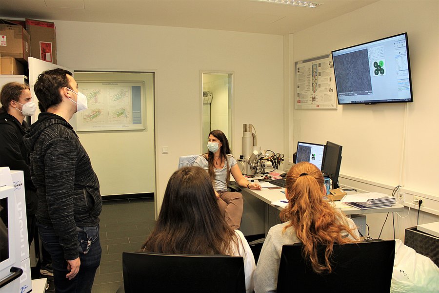 In Kleingruppen machten rund 35 Schülerinnen und Schüler der Solinger Gymnasien Schwertstraße und Vogelsangstraße eine Rallye durch die Labore des Lehrstuhls mit spannenden Versuchen rund um die Charakterisierung von Metallen.