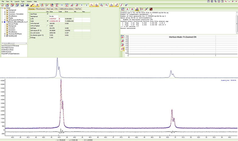 - Ermittlung kristallographischer Strukturparameter, z.B. Gitterparameter und Microstrain zur experimentellen Ermittlung von Stapelfehlerenergien