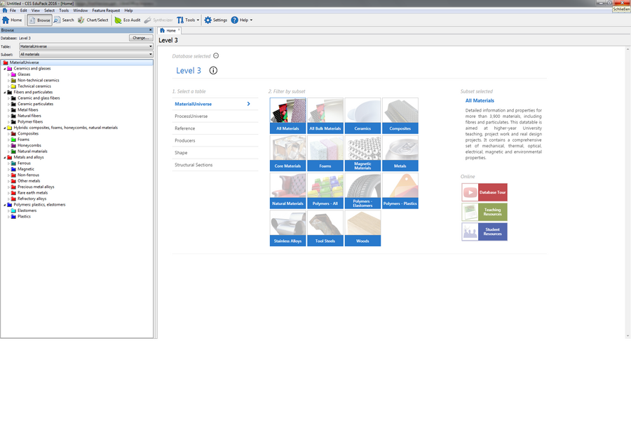 CES EduPack wird in der Lehre im Maschinenbau, der Sicherheitstechnik und des Industrial Design eingesetzt, um auf Grundlage einer umfangreichen Datenbank mit etwa 4.000 Materialeinträgen eine geeignete Werkstoff- und Prozessauswahl zu treffen. Das Konzept der Werkstoffauswahl ist dabei vierstufig aufgebaut: